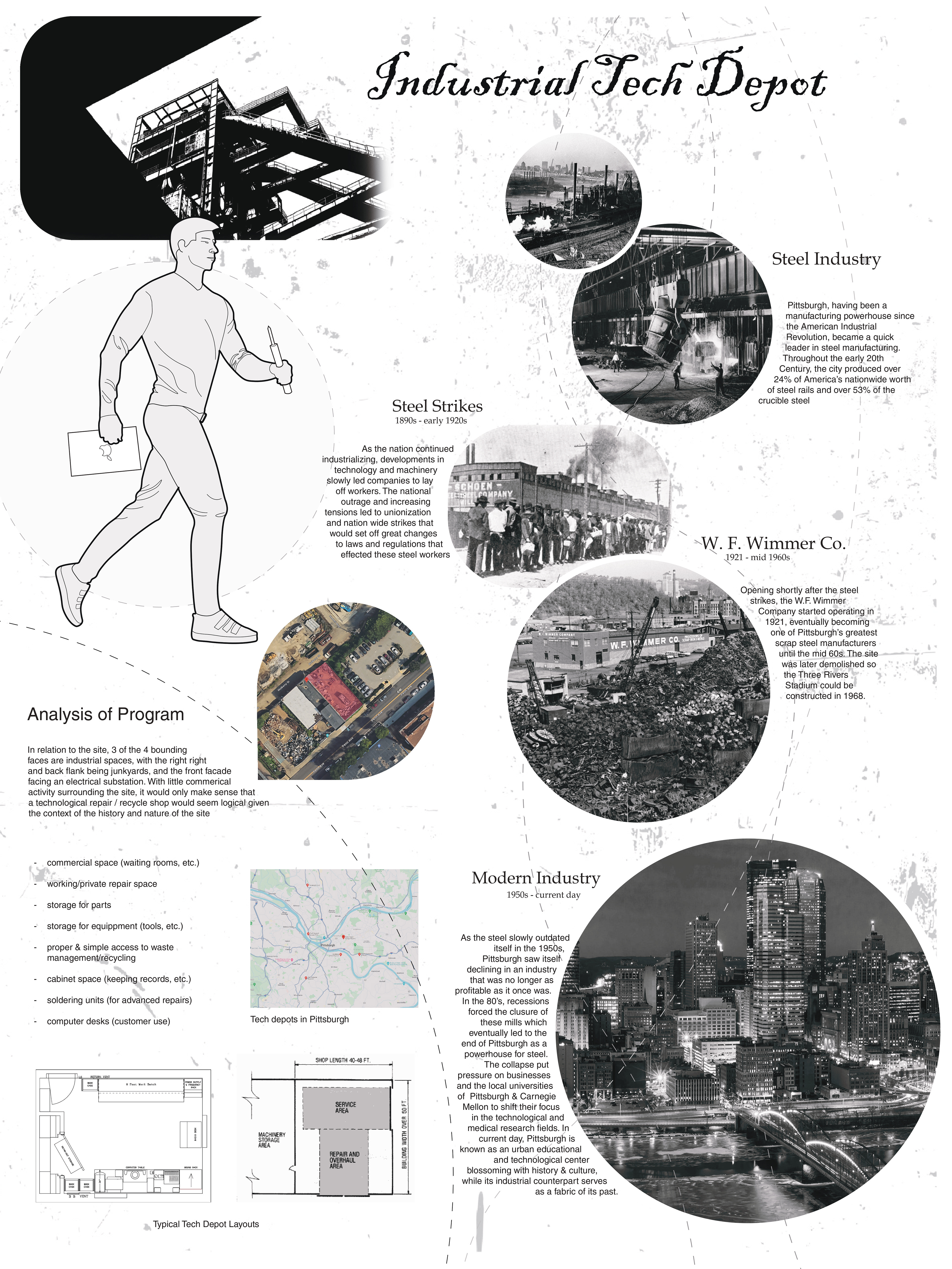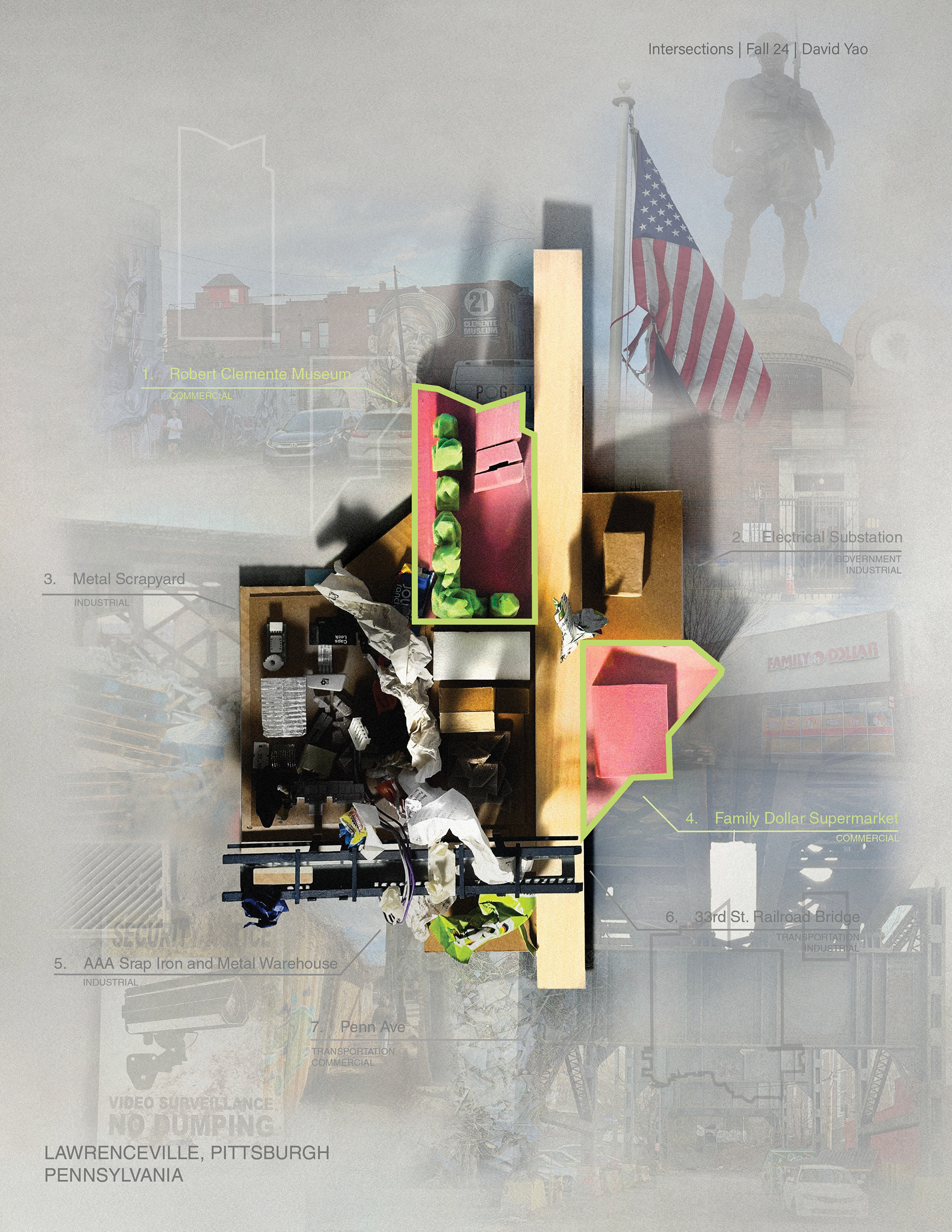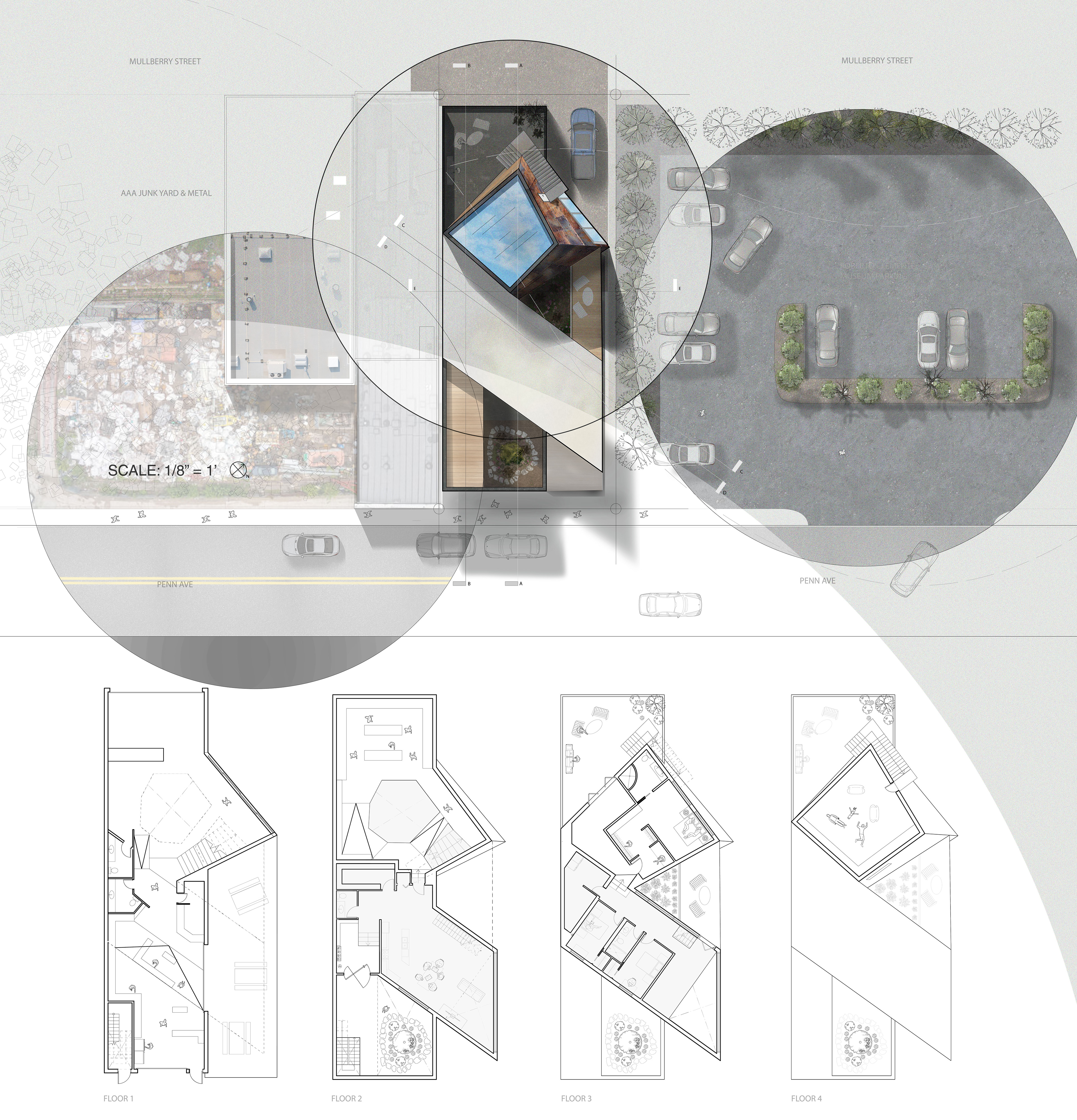 Set within a former junkyard, this project transforms industrial residue into a tech salvage depot and community workshop. A single-family residence completes the program, binding production, repair, and living into a cohesive site. The members represent Pittsburgh's rising Asian population & Lawrenceville's diversifying demographic.