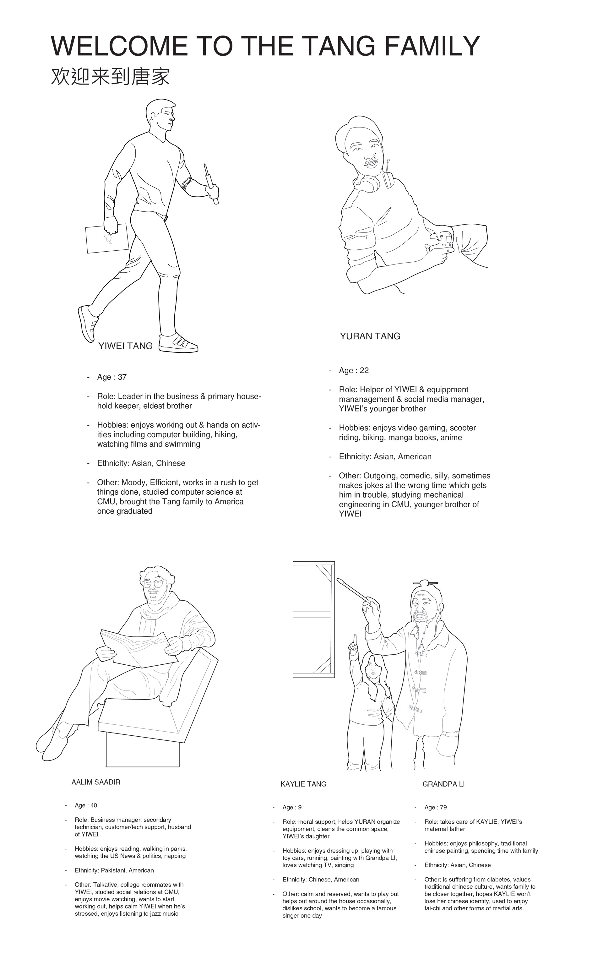 left. historical contextualization & program board - right. character board