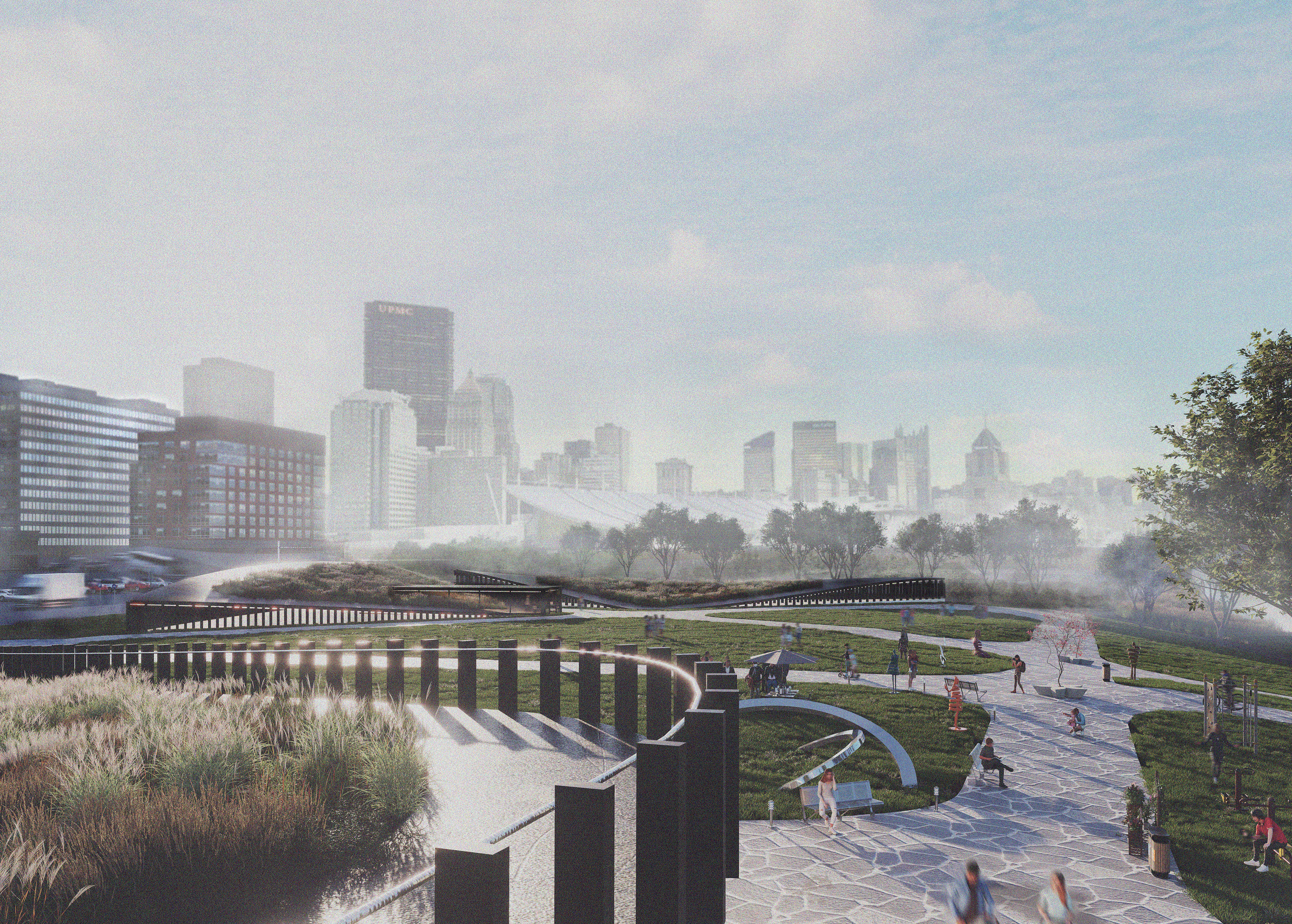 This project explores Pittsburgh’s cultural energy into a network of pathways that become the framework for bold new spaces. One site rises from the Strip District’s growing identity; the other is carved into the historic mass of Station Square. Between them unfolds a civic realm of plazas, art walks, and sculpture parks celebrating the city’s evolving identity as a center for art and community.