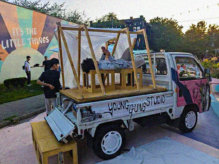The YoungGuns × SCI-Arc summer studio culminated in a public exhibition where we transformed an underutilized street in Vancouver into an open pedestrian gallery and parklet in collaboration with the City of Vancouver. Seeing student work displayed through physical installations and digital projections allowed the space to come alive as a place for walking, gathering, and rest. The project showed me how architecture can temporarily reshape everyday infrastructure into meaningful public space.